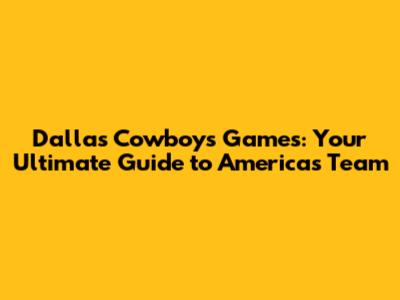 Dallas Cowboys Games: Your Ultimate Guide