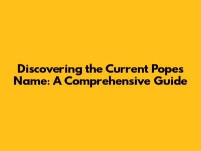 Discovering The Current Pope's Name