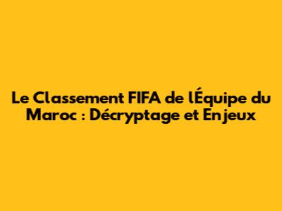 Le Classement FIFA De L'Équipe Du Maroc : Analyse Et Perspectives