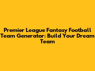 Premier League Fantasy Football Team Generator: Build Your Dream Team