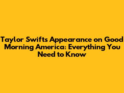 Hey guys! Are you ready to dive into all the deets about Taylor Swift's recent appearance on Good Morning America? This mega-star always knows how to make headlines, and her visit to GMA was no exception. We’re breaking down everything from her performance to her interview, and why it's still got everyone buzzing. So grab your coffee, settle in, and let's get into it!